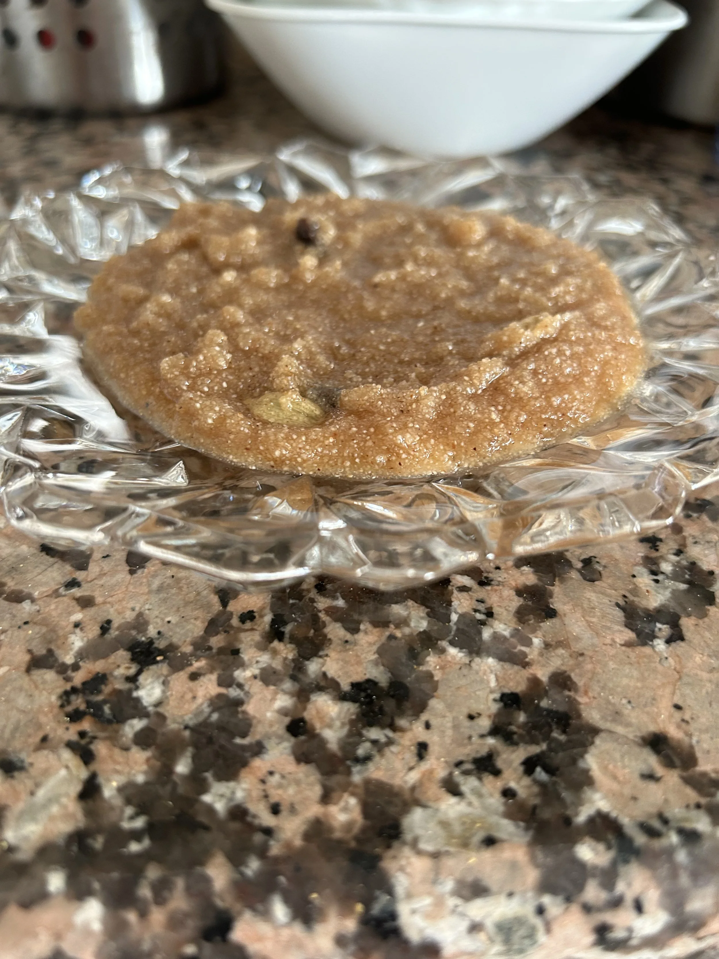 Sprinkle these fried nuts and raisins to the suji halwa that you took out in the plate,
